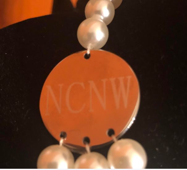 Wear this beautiful 3-strand pearl necklace for your meetings and other organization events. Measures about 18 inches. NCNW medallion is about the size of a quarter. Silvertone hardware.
