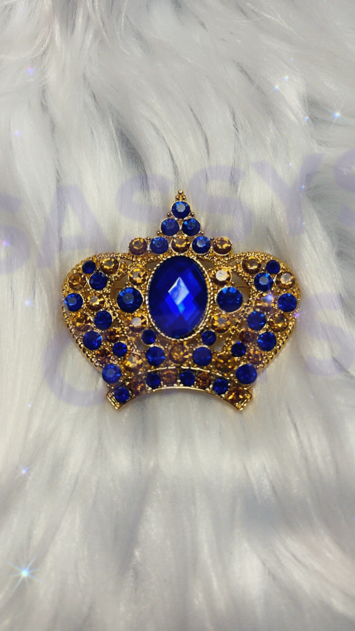 Elevate your style with the TLOD SGRho Large Royal Blue and Clear Rhinestones Crown Pin. A Sassy Original. Designed to sparkle and exude royal elegance. Represent your Sorority and Organization in one fashion piece.