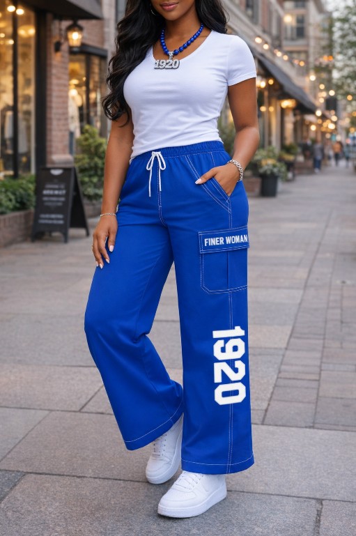 The Zeta Phi Beta Cargo Pants are officially the MUST-HAVE item! 🔥 Crafted from premium cotton twill, these cargos are perfect for year-round wear. The founding year is boldly embroidered on the leg, with ZPB on one cargo pocket and FINER WOMAN on the other — stylish details that make a statement wherever you go. 💙🤍