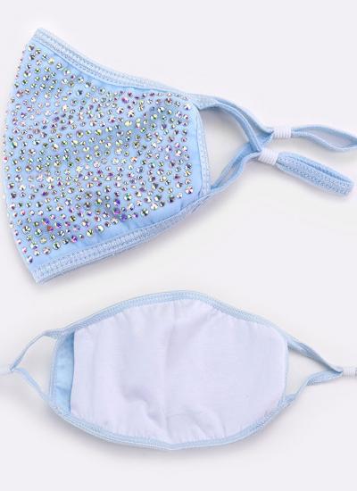 Light Blue Rhinestone Mask $20.00Body: Size : 7.5" X 5" (Approximately), Cotton Lining, Adjustable Ear Strap, has Filter Pocket / Filter Not Included Limited Supply Enter Quantity