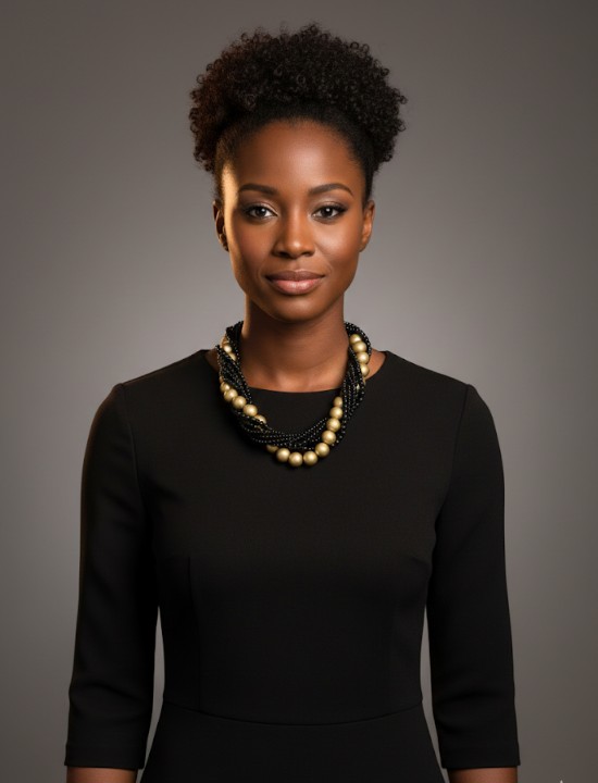 A luxurious, hard-draped necklace featuring five strands of black-colored pearls accented by large, polished gold beads. This twisted style necklace offers a rich, braided texture that sits beautifully against the collarbone.
