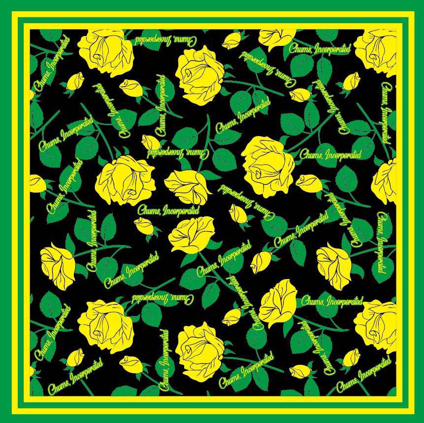 Wrap yourself in the vibrant beauty of this CHUMS Yellow Rose with a hint of black scarf. Featuring a black background, this scarf is the perfect accessory for any CHUMS occasion.