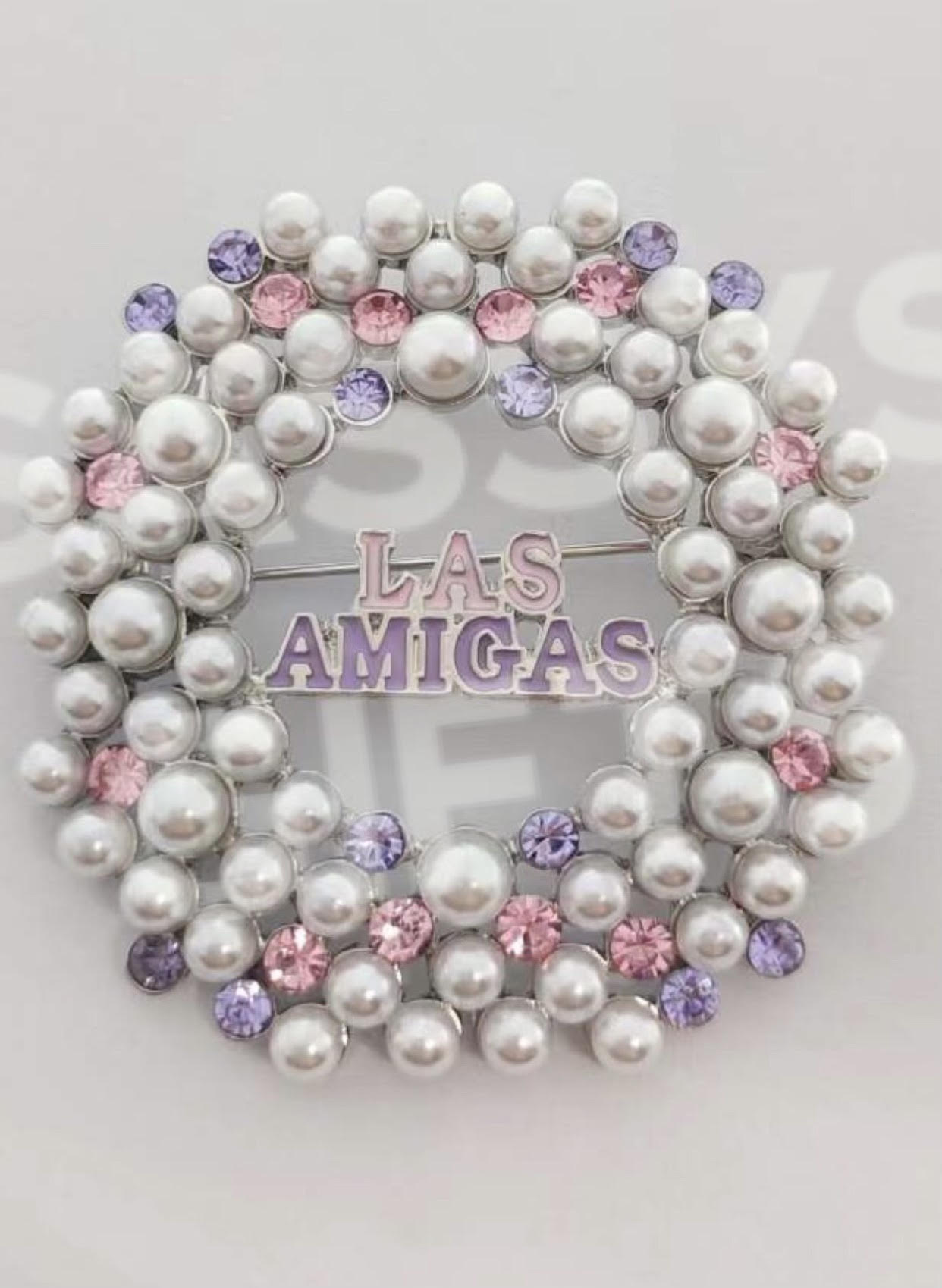 Las Amigas Pearls and Rhinestones Wreath Pin