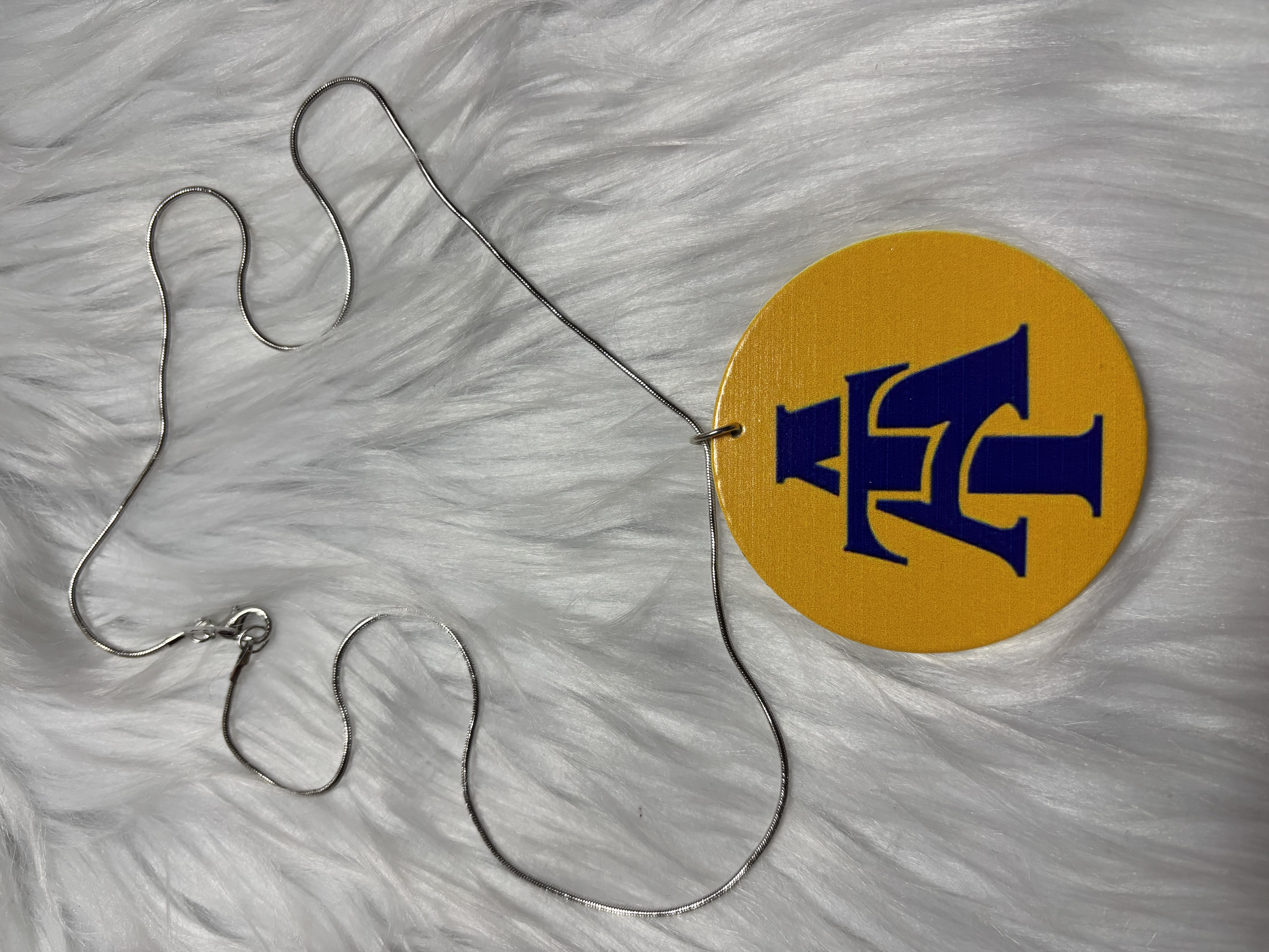 Show your Aggie Pride with this cute wooden necklace. Medallion measures about 2.5 inches. Necklace is 18 inches. Perfect for undergrads, all A&T occasions and especially GHOE!