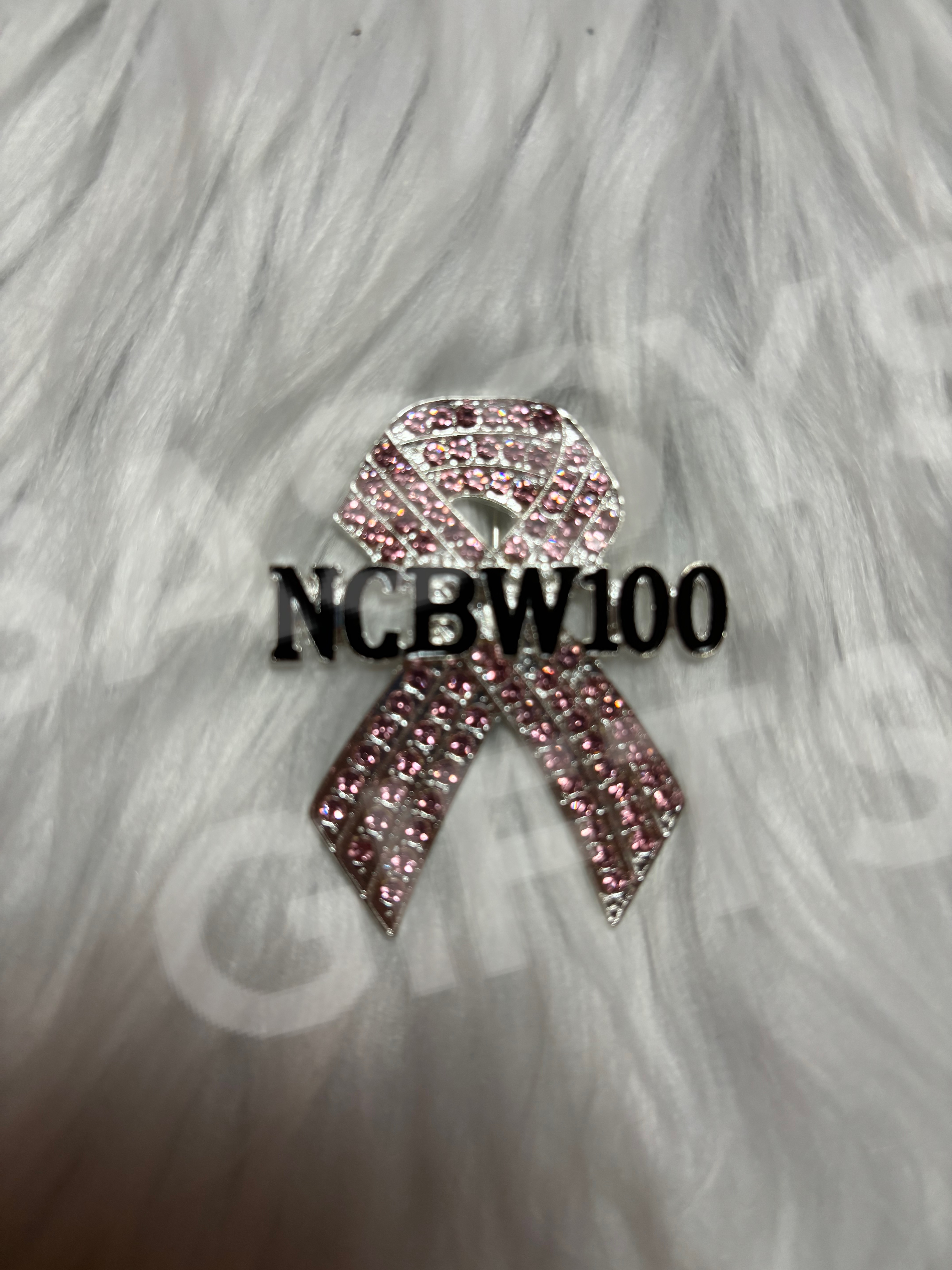 This pin is large and draws attention. Approx 2" x 1.5". This is not a lapel pin but a statement pin to recognize Breast Cancer awareness. Pink rhinestones with letters in black epoxy.