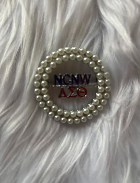 Beautifully represent NCNW and Delta Sigma Theta on one pin. Surrounded with white pearls.